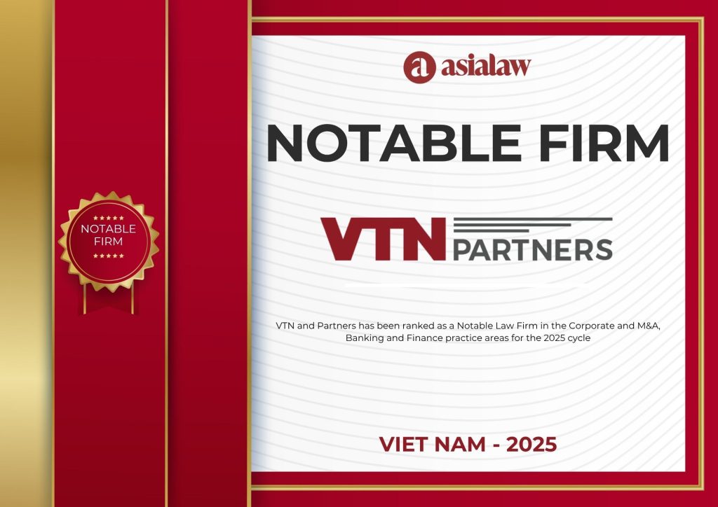 We are honored to share that VTN and Partners has been ranked a Notable Law Firm in Corporate & M&A and Banking & Finance practice areas for the 2025 cycle. This recognition is a meaningful milestone for our young firm and a testament to the trust our clients and partners place in us, as well as the dedication, integrity, and hard work of our team..